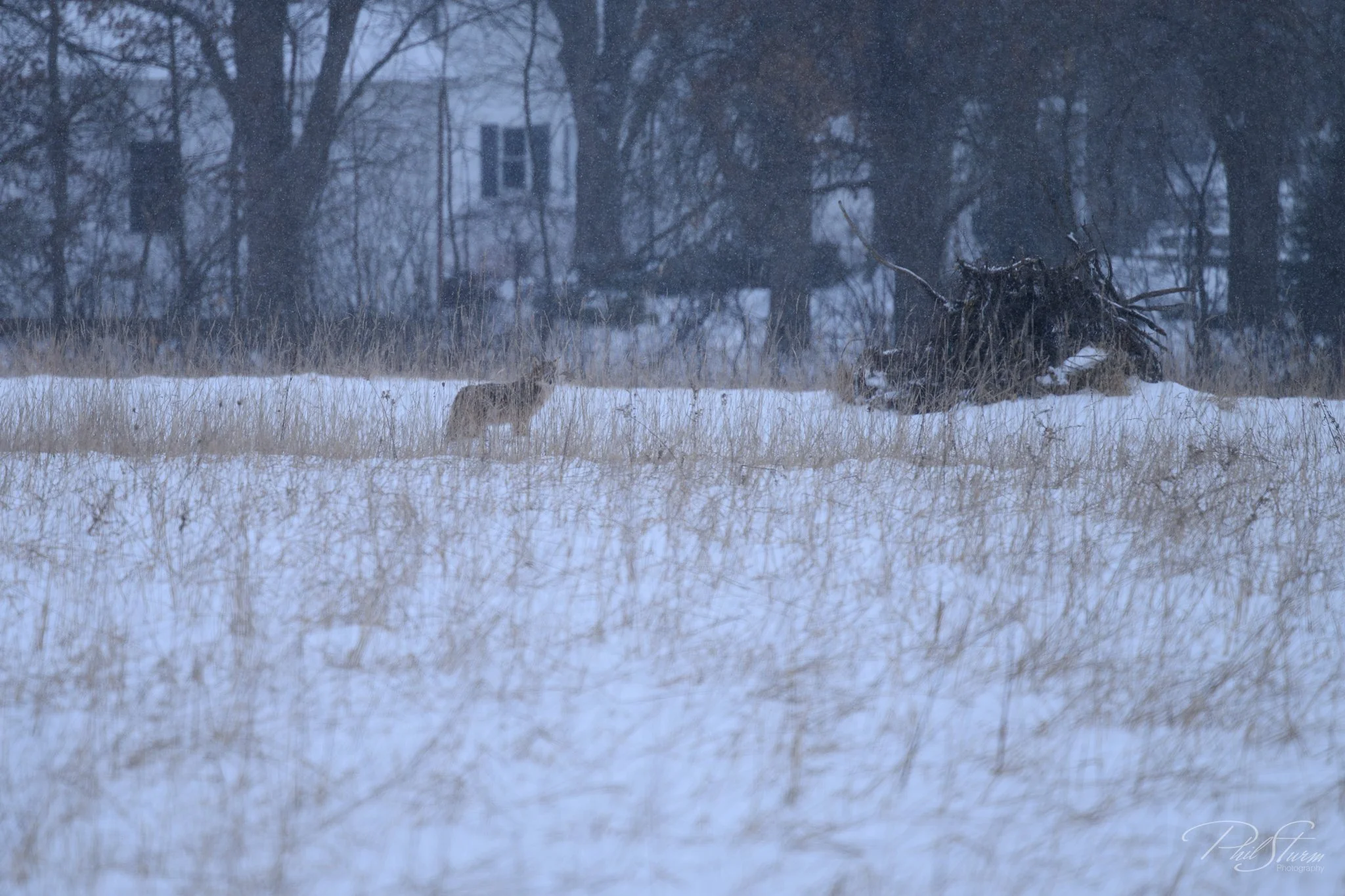 While on the road, just before crossing the interstate I saw this coyote off in a field. I had to stop and try to photograph him.